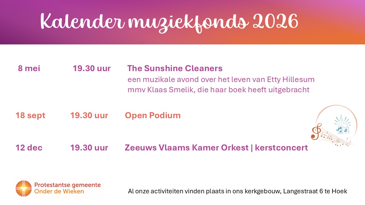 Welkom op de website van de Protestantse gemeente Onder de Wieken te Hoek. Sinds 1 januari 2025 is de Protestantse gemeente te Hoek en de Protestantse gemeente Philippine, Sas van Gent, Sluiskil samen verder gegaan als de Protestantse gemeente Onder de Wieken te Hoek. Alle informatie over onze gemeente is gebundeld in deze website. We hopen dat u en jij de weg zult vinden op deze site en ook naar ons mooie kerkgebouw -onder de wieken van de molen-, in het centrum van Hoek. We kijken ernaar uit om u te mogen ontmoeten. |